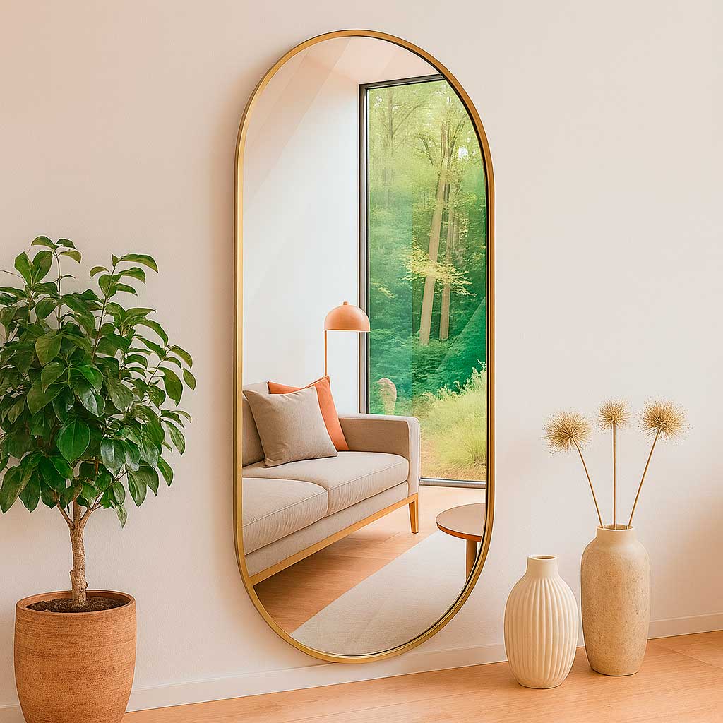 ✅ Perfecto para: quienes buscan un espejo de cuerpo completo con diseño estilizado y bordes ovalados, ideal para realzar la decoración con un toque moderno y sofisticado.