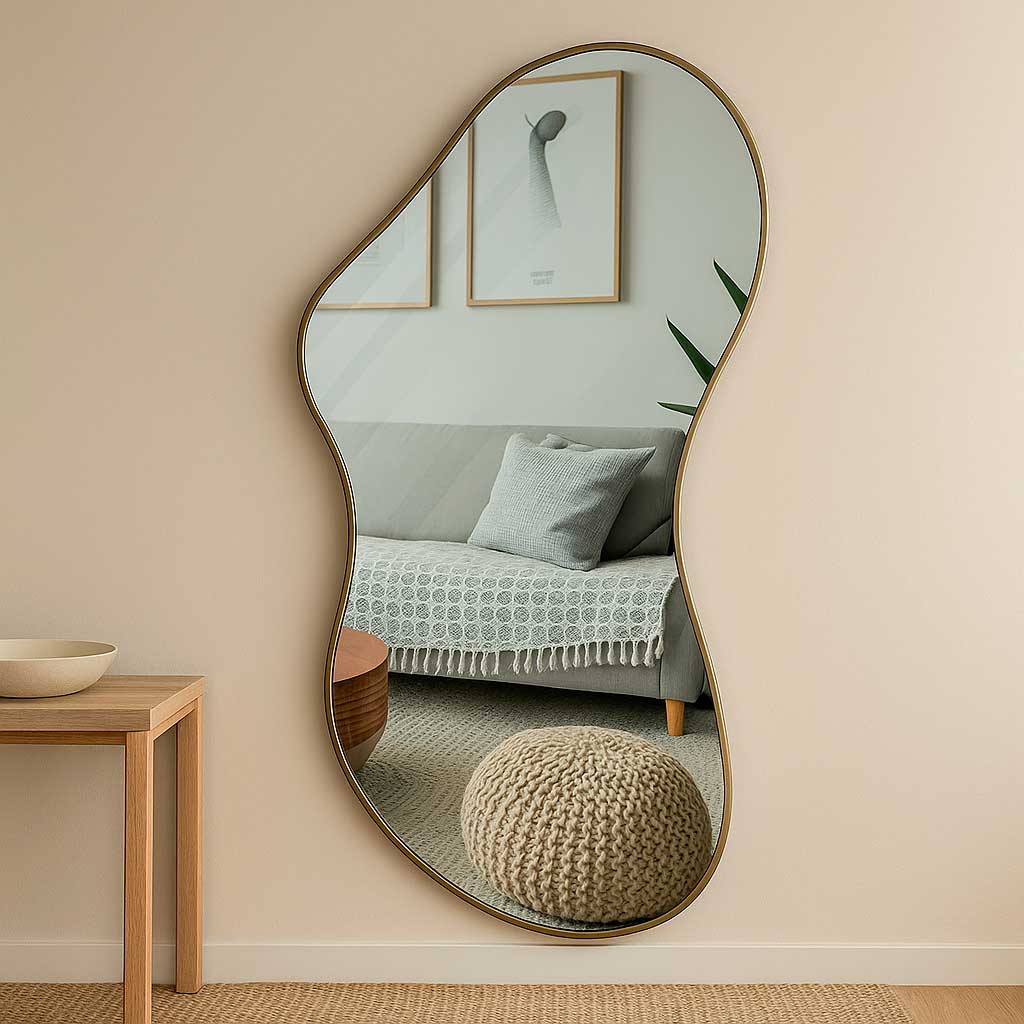 ✔ Diseño irregular de cuerpo completo con borde metálico – Una pieza de gran tamaño que aporta modernidad y amplitud visual a cualquier espacio.